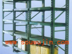 广州模具货架生产厂家又称模具架或抽屉式货架,主要存放各种模具物品,根据层载能力要求分为轻型模具货架和重型模具货架。货架顶部可配置移动葫芦车,以方便模具的起吊。