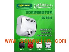 庄臣QS-8610不锈钢高速干手机是目前唯一同时具有:自然风/加热风两档调节的不锈钢高速干手器机型。