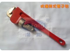 目前我们的防爆管子钳有两种材质的产品供选:铝青铜合金和铍青铜合金,这两种材质的产品经过加工处理后都能起到防爆的功能。其中铝青铜合金的防爆管子钳经过加工处理后的抗拉强度能达到25度以上,铍青铜合金产品可以达到35度以上,而其中的铍青铜合金产品是既防爆又防磁的产品,并且产品的质量和强度绝对能够满足客户朋友们的需要。