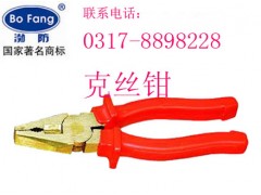 【性能介绍】防爆克丝钳是由铜和其他的稀有金属进行合金铸造成形,然后再经过一系列的加工处理后成为我们供应给广大客户朋友们的成品产品,此类产品由于材质的特殊性而使产品具备了防爆的功能。