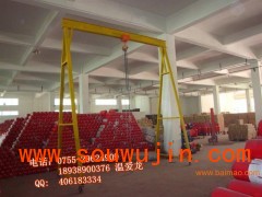 龙门架特性: 1、设有自升装置,架设、拆卸靠本身设置的工作机构可独立完成。高度随着建筑物的升高而升高。 2、采用附着杆附着,不用揽风绳,改善了施工条件。 3、架设、拆卸时,始终有两立住联成一体,工作评为平稳,安全可靠。 4、龙门架(模具吊架)采用手摇卷扬机自升平台,用扒杆安装标准节,劳动强度低。 5、龙门架(模具吊架)采用断绳安全保护装置,一旦因故断绳,设置在吊篮两侧的卡板将吊篮卡滞在空中,阻止了吊篮坠地事故的发生。