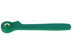 防爆棘轮扳手是由铜合金(铝青铜、铍青铜)炼制而成,由于铜合金的特殊物理性能(即不含碳和导热性能良好),使得棘轮扳手和机械部件摩擦或撞击时产生的热量被迅速吸收及传导开来,而且铜本身相对其他有色金属来说比较软,摩擦和撞击时有很好的退让性,不易产生微小金属颗粒,于是我们几乎看不到火花,因此防爆棘轮扳手又称为无火花棘轮扳手,该扳手由于一个梅花套具有两个规格的梅花形通孔,使它可以用于两种规格螺丝的松紧,从而扩大了使用范围,节省了原材料和工时费用。活动扳柄可以及时方便地调整扳手使用的角度。防爆棘轮扳手具有适用性强,操作方便和价格低廉等优点(相关产品撬棒棘轮扳手、换向棘轮扳手)。