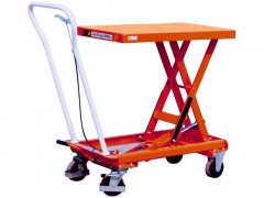 还用于搬运小型贵重物品。产品外观大方美观、结构牢固、稳定安全可靠,内在性能和使用寿命已达到同等设备先进水平。目前市场主流为液压驱动升降,由于体积小巧,移动方便广泛应用于物流运输、仓库管理,图书馆、超市、及普通小型设备制造业。手动液压平台车采用高强度钢材制作而成,设计结构合理,安全平稳可靠,内装安全阀,全密封油缸,手动控制液压系统升降,操作方便简捷。 配有尼龙导向轮向轮节省操作者的体力,并能保护载重轮与托盘载重轮。独特液压泵设计,起泵简便为流水线装载和卸载操作保持一个理想高度而设计;加上独特人体工学设计,使操作者操作舒适。手动液压搬运平台车设计新颖,机构合理,使用方便.适用于工厂、车间、仓库、油库的园桶装卸、搬运、堆垛.特别适用于化工,食品车间倒料或配料使用,并可将重物装卸汽车、堆垛,配合液压圆桶搬运车作业,可以极大地提高工作效率,减轻工人的劳动强度,也可以将它改装用于装卸、起升重物,是一种新型理想的多用途的起降装卸机械. 手动平台车又名手动液压平台车,平台下降控制为旋扭或扳手控制,踏动塌脚杆操纵油泵,使工作台面平稳上升。操纵控制旋钮或向上提升扳手,使工作台面平稳下降, 车架底部配有万向轮,可向任意方向旋转,操作灵活简便。该系列产品通过提升平台至适当的高度,减少工人因搬运、弯腰引起的受伤几率,大幅度降低工人的牢度强度。提高工作效率,手动液压平台车广泛应用于工厂,超市,车队运输。产品特点:重符合钢结构。 为提升桌面高度至需要的水平,简易的脚操作。 有安全轮保护的牢固小脚轮和位于两个旋转脚轮的制动器,是为了轮子装载和卸载时更加安全。 手操作桌面减少控制。 超重旁道阀门保护操作器和油泵。 可选:镀铬手柄,上漆手柄,折叠手柄和坚固手柄。