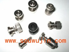 弹簧螺钉-弹簧螺钉用于线路板和机箱之间的连接使用,产品由弹簧,手拧套,和铆压圈组合而成.工作时不用任何工具,直接用手拧动就可完成.故也可以称为手拧螺钉.