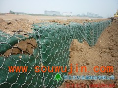 石笼网英译是:Gabion。石笼网是一种生态格网结构。石笼网由高抗腐蚀、高强度、具有延展性的低碳钢丝或者包覆PVC的以上钢丝使用机械 编织而成,使用该网制作而成的箱型结构就是石笼。根据ASTM和EN标准,所使用的低碳钢丝直径根据工程设计要求而不同。一般介于2.0-4.0mm之间,钢丝的抗拉强度不少于38kg/m2,金属镀层重量一般 高于245g/m2石笼网片的边缘线直径一般要大于网线直径。其双线绞合部分的长度不得小于50mm.以石笼网(1张)保证绞合部分钢丝的金属镀层和PVC镀层不受破坏。