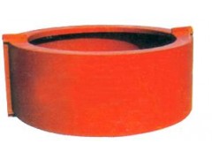 可曲挠橡胶接头埋地防护装置为两个半圆形中空组合而成,将橡胶接头和管道平焊法兰全部装入体内,两端安装设有两半圆形小平面带钢骑于两侧法兰外管壁,两端立面支撑根据土层深度而定,足以承受外压负重。