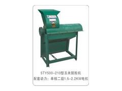 工作原理:玉米脱粒机,工作时,玉米在高速旋转的转子与滚筒内受到撞击,籽粒由筛孔分离出去,玉米芯从机器尾部排出,玉米丝,皮从风口排出。进料口设在机器上盖上部,玉米棒通过进料口进入脱粒室,在脱粒室内受到高速旋转的转子撞击玉米粒脱落,通过筛孔分离出去,喂入口前下部有一块挡板,防止脱落的玉米粒飞溅伤人。该种机器,脱粒的效率由滚筒的长度和直径而确定,用户可根据自己的脱粒效率,合理选用此系列玉米脱粒机。转子上的钉齿是易损件,应经常检查其磨损情况,当钉齿磨损四分之一时,可用电焊修复或更换新钉齿,如修复更换新钉齿时,必须全部修复或更换,以保证转子的平衡;筛网也是易损件,如筛网破损,请更换新筛网。
