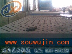 主要作用:承载和固定有曲形加工要求的船壳钢板和型钢零件。火工平板必须外形平整、尺寸准确、内部无各种缺陷,造船用火工平台应具有足够的强度和刚度可承受火工榔头敲击力,