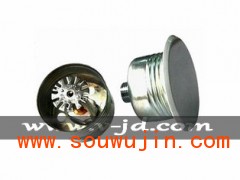 1、该喷头由专用下垂型洒水喷头、内、外罩、底盖等组成.在灭火过程中,底盖与内罩间的易熔合金首先融化,底盖脱落,当坏境温度升高到达玻璃球的额定动作温度时,玻璃球破裂,喷头喷水灭火.
