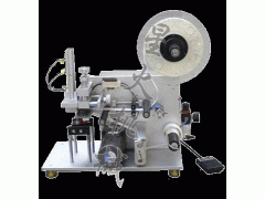 当传感器检测到产品到位或脚踩发出产品到位信号,吸着标签的吸头下行贴标并覆标,然后退回原位吸附下一张标签,等待下一个贴标信号,一张标签的贴附动作完成。