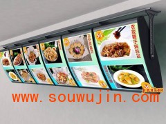 户不同的要求。旋转双面餐饮灯箱都带有挂件和支架,灯箱角度可以调整,可以将灯箱装在房顶上或者墙