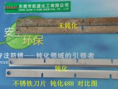钝化机理:本产品由多种高效络合剂、缓蚀剂等组成。与一般的防锈油或封闭剂有着本质的区别。不锈铁表面经过与钝化液浸泡接触后,在不锈铁表面产生微化学反应,将原先化学性质活泼的金属表面转变为化学性质惰性的金属表面,达到很难与外界物质再产生化学反应。从而达到长期防锈的作用。
