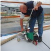 防水卷材热合机的特点:体积小、重量轻,焊接操作简便经济,先进的热风焊接技术,键盘操控设定热风温度、焊接速度、风机转速,液晶面板数字显示设定值和实际值,根据防水膜材质厚度增减配重块调整焊接压力,从而保证焊缝均匀牢固可靠、强度高、抗撕裂、无渗漏,焊接质量好,施工效率高、有效避免漏焊、虚焊、烤焦产生的渗漏现象,尤其适合于大面积屋顶防水的快速焊接施工。