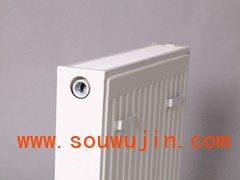 走水部分由两片辊压成型的钢板经焊接而成,其外表面焊接有面积较大的折型对流片。依据传热学原理,散热器的散热效果主要与散热器内部通过热媒温度、散热器外部空气温度、散热器与空气接触的外表面面积、空气流速等有关。一般使用情况下,散热器内部通过热媒温度、散热器外部空气温度、空气流速等条件基本相同。钢制板式散热器除了走水部分的外表面面积之外,更有增加了3倍左右面积的对流片,所以钢制板式散热器较其它散热器在结构上更具节能优势。