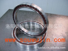 用于磨床高速磨削主轴的角接触球轴承除上述要求外,还要求轴承在极高的转速下运转。为了减少高速时球在离心力和陀螺力矩作用下引起的旋转滑动和自旋,在设计时常采用较小直径的钢球。对于d•n 值高,寿命长的高速主轴还可采用比重轻,耐磨性好的陶瓷球取代钢球,以达到更完美的性能。本公司可依据用户要求提供这种高性能陶瓷球混合轴承。高速磨削主轴常用的轴承类型是B70C、B70CA系列,在重载时也可采用B72C、B72CA系列。保持架采用高强度酚醛夹布管制造,外圈挡边引导可使轴承获得良好的润滑。