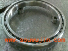 角接触球轴承极限转速较高,可以同时承受径向载荷和轴向载荷,也可以承受纯轴向载荷,其轴向载荷能力由接触角决定,接触角越大,轴向承载能力越高,接触角越小,承受轴向载荷就越小。反之,接触角越小,承受径向载荷的能力越大,也越适用于高速应用的场合。 单列角接触球轴承只能承受一个方向的轴向载荷,在承受径向载荷时,会引起附加轴向力,并且只能限制轴或外壳在一个方向的轴向位移。角接触球轴承的接触角为40度,因此可以承受很大的轴向负荷。角接触球轴承是非分离型的设计,内外圈的两侧的肩部高低不一。为了提高轴承的负载能力,会把其中一侧的肩部加工得较低,从而让轴承可装进更多的钢球。
