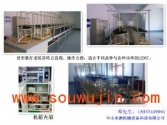 五、 功 能 特 点:本LED多功能老化设备专用于多种LED成品灯的检测老练,通过对LED灯的高压、常压、低压、冲击、漫游等电压区的老练。电压调节范围宽。使用整灯老练其特点直观、操作方便,适合不同品种与各种功率的LED灯。动力系统采用变频调速系统,操作简单。