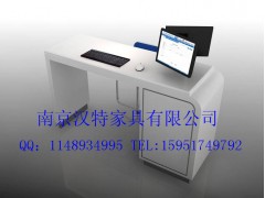 材质及工艺描述:柜体中纤板面喷白色哑光漆,桌面可选择静电粉末喷涂中纤板、白色色烤漆中纤板、白色人造石,1.2MM不锈钢包边踢脚。