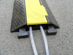 橡胶线槽,又称作线槽减速带,底部由橡胶压制而成,主要适用于道路过电