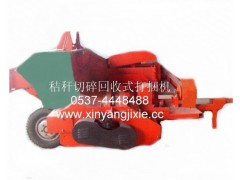 秸秆切碎回收式打捆机;由秸秆切碎机构,传动机构、捡拾机构、耙草机构、活塞冲压机构、打结机构等部分构成。适合站立倒伏的玉米、水稻、麦草、苜蓿草、羊草、芦苇、棉花秸秆经过喂入、切割、压实捆扎最后打成方捆。可根据作物条件、运输和贮存的要求调整捆的长度和密度,并能自动连续作业,便于运输、储存和深加工。适合在各种农场、草场以及各种秸杆回收。