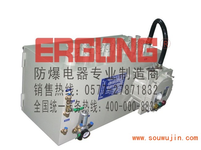 5.按进气方式分为通风型和补偿型。通风型为不间断连续供气,正压腔内装元件的工作热量可随气路带走,具有很好的散热功能,适用于解决大功率防爆变频器的散热问题;补偿型为间断性供气,正压腔要有良好的密封性,确保耗气量小。