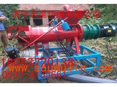 鸡粪处理机采用无堵浆液泵将需要分离过滤的原浆物料,抽至固液分离机进料口,然后浆液、粪液经固液分离机螺旋绞龙叶片挤压过滤,过滤出的废水从固液分离机下端流走,分离出的固体物质从固液分离机前端排出。
