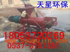 将禽畜粪水用液下泵将粪液抽送至猪粪脱水机,然后经分离机螺旋脱水,如果抽入粪液过多,会经溢液管排到原粪池,经螺旋挤压过滤分离出的粪液可直接派送至沼气池发酵沼气或排送至其储水沉淀池等。固体干粪由出粪口排出。