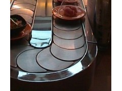 旋转火锅 旋转吧台,寿司输送设备,回转火锅输送带,自助火锅设备 火锅设备 回转火锅设备链板及链条均采用304磨沙面冲压而成,板厚1.8mm,宽度140mm,链条节距100mm,链条下部分导轨面板采用304锈钢镜面,板厚度为1.2mm,内部采用白色防摩尼龙垫条,旋转吧台,寿司料理,旋转火锅,自助火锅餐厅。下架采用30mm*30mm*1.5的碳钢方管焊接而成,表面经过防锈处理,所有连接部分均采用标准件连接,便于移装。旋转吧台,寿司输送设备,回转火锅输送带,适应了饮食界推陈出新,适应了现代人对饮食新奇的追求。鹤岗旋转火锅设备 鹤岗自助旋转台 鹤岗火锅旋转台是你从事餐饮火锅行业,日本料理,韩国料理必备前卫机械设备.