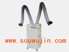 焊接烟尘净化器通过风机引力作用,焊烟废气经万向吸臂吸入设备进风口,设备进风口处设有阻火器,火花经阻火器被阻留,烟尘气体进入沉降室,利用重力与上行气流,首先将粗粒尘直接降至灰斗,微粒烟尘被滤筒捕集在外表面,洁净气体经滤筒过滤净化后,由滤筒中心流入洁净室,经出风口排出。手动清灰型:(灰尘经滤筒收集满之后,会出现吸力下降的现象,清灰手动,拆卸方便,除尘彻底)。自动清灰型:(滤筒的更换和清理通过压力显示提示,采用内置PLC自动控制系统对滤筒进行清灰)。