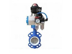 D671F气动四氟蝶阀执行机构:采用新型系列GT型气动执行器,有双作用式和单作用式(弹簧复位),齿轮传动,安全可靠;大口径阀门采用系列AW型气动执行器拔叉式传动,结构合理,输出扭矩大,有双作用式和单作用式。