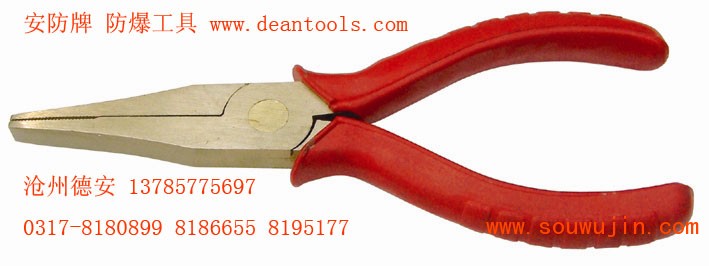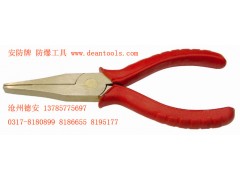 铝青铜防爆扁嘴鉗可以在浓度7.8%以下的乙烯气体中作业,防爆等级GBEx ⅡB 。铍青铜防爆扁嘴鉗可以在浓度21%以下的氢气中作业,防爆等级GBEx Ⅱ C。防爆扁嘴鉗的优点是在使用的过程中不会因为相互之间的碰撞和摩擦而产生机械火花,也就不会引爆可燃气体引起爆炸事故,因此防爆扁嘴鉗等工具又称为无火花工具。