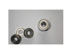 日本KOYO推力滚子轴承属分离型轴承,只能承受单向轴向载荷和轻微冲击,能够限制轴(或外壳)一个方向的轴向位移,因此可用作单向轴向定位。但其承载能力远远大于推力球轴承。滚子滚动时,由于滚子两端线速度不同,使滚子在套圈滚道上不可避免地产生滑动,因此,此类轴承的极限转速较推力球轴承低,通常仅适用于低速运转场合。标准设计的推力圆柱滚子轴承采用车制金属实体保持架,根据用户要求,也可采用其它型式或材料的保持架。推力圆锥滚子轴承只能承受单向轴向载荷,能限制轴承单向轴向位移,故可用作单向轴向定位。与推力圆柱滚子轴承相比,承载能力大、相对滑动小,但极限转速较低。推力圆柱滚子轴承主要用于重型机床、大功率船用齿轮箱、石油钻机、立式电机等机械中。