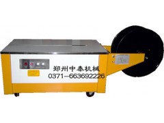 本打包机为半自动捆扎机,在插入包装带后能自动完成聚带、热合、切断、出带的捆扎过程,且能自动停机。在国外样机的基础上重新改进设计制造而成,使用范围广,不管大小包装,不用调整机器就可以打包该机属机械式结构,部分采用进口零件,后刀刃稳定可靠,调整方便等特点。