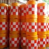 本产品采用高强度、高弹性的改性塑料制成,桶身为黄色,贴高强级反光膜,白天和夜间都明显可视。防撞桶为一次性成型,耐热、耐寒
