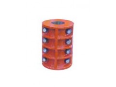 夹壳联轴器属于刚性联轴器,是利用两个沿轴向剖分的夹壳,用螺栓夹紧以实现两轴联接,靠两半联轴器表面间的摩擦力传递转矩,利用平键作辅助联接。
