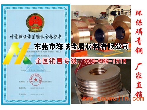 东莞市海峡金属材料有限公司直销总代理:磷青铜牌号齐全,价格合理,库存充足,现货供应,欢迎您来人来电洽谈业务,为用户提供分条,裁剪加工服务,及17%票,附带原厂材质报告和SGS报告.