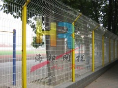 结构:三角折弯护栏网采用冷拔低碳钢丝焊接成的隔离网,用连接附件与钢管支柱固定。