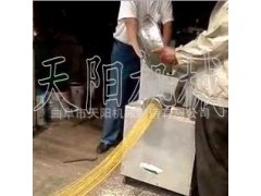 设计新颖、结构合理、造型美观,是在挤压机械的基础上,研制成功的一种新型单(双)螺杆食品挤压机,接通电源即可生产操作简单、清理维修方便等特点,主要用于以玉米等粗杂粮为原料生产各种自熟面条。其工作原理就是运用机器在转动时的机械能转化成热能,将原料挤压成熟。不加任何原料和添加剂,是一种天然绿色食品,它不仅保留玉米的特有营养成分和微量元素,而且产品色泽好、劲道耐煮、滑爽细腻、口感鲜美、不糊汤,蒸、煮、炒、涮皆可。 性能特点:1、结构精良,一机多用。可生产五谷杂粮面条、米线米粉、钢丝面、冷面凉面等。2、工艺先进,高效节能。充分利用物料研磨过程产生的热能,生面投入,熟面产出,面条自动熟化,自动成型,提高品质,节省能耗。3、操作简单,移动方便。生产工艺易学易懂,一人即能操作。型号与价格:TYG-A型时产50-60公斤,动力2.2KW(220V),价格2300元,TYG-C型时产100-120公斤,动力7.5KW,价格3600元。TYG-D型时产150-200公斤,动力7.5-11KW,价格7580元。另可根据客户需要配备玉米脱皮机,磨粉机,拌面机等。售后服务:1、购玉米面条机免费培训机器操作维修保养技术,提供各种杂粮面食生产工艺配方。2、两年内玉米面条机出现质量问题,保修包换。天阳机械公司张杰欢迎致电13181307932 18953731698 QQ531079582咨询