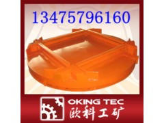 重型转盘是改变矿车方向的设备,与其他设备配套使用,可实现井口及井下材料运输。在0~360°范围内按需要设置固定的进出线路。可代替自动滑行的转弯弯道,节省场地订货时需注明轨距、回转方向和回转角度。