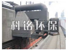 皮带小车式出焦除尘是通过皮带密封小车将1米宽皮带提起,经90度导风管使烟尘进入集尘管道,通过集尘管道送到地面站进行净化处理.此焦炉炉顶消烟除尘车系统的原理是在推焦时产生的烟尘通过集尘车将烟尘收集并通过皮带提升小车将烟尘送入集尘管道,该管道上部由耐高温皮带覆盖,在风机的吸力作用下,管道内处于负压状态,皮带紧贴集尘管道导轨,使焦炉烟尘不能外泄,直接送入焦炉地面除尘站进行净化处理.皮带小车的机架与拦焦车集尘罩相连,由拦焦车带动,使整机在皮带集尘干管上与拦焦车同步走行.炉顶消烟皮带提升小车用于导通除尘器与拦焦车集尘罩,使焦侧烟尘通过此干管进入焦炉地面除尘站进行处理,是移动尘源与固定设备之间的连接通道.