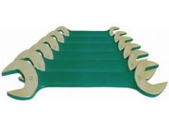 双头呆扳手采用铍青铜、铝青铜合金材料制成。 规格又6件套、8件套、11件套、13件套。6件套内装:5.5*7、8*10、12*14、14*17、17*19、22*24;8件套内装:5.5*7、8*10、10*12、12*14、14*17、17*19、22*24、24*27;11件套内装:8*10、9*11、10*12、12*14、14*17、17*19、19*22、22*24、24*27、27*30、30*32;13件套内装:5.5*7、6*7、8*10、9*11、10*12、12*14、14*17、17*19、19*22、22*24、24*27、27*30、30*32。更多详情请查询 http://www.deantools.com