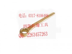 防爆单头梅花扳手,和其他梅花扳手不同的地方主要是在工作端与把手之间由一个有弧度的设计。这种设计使得使用更容易使力,转角更小,但是并不是很适合在空间狭窄的地方。