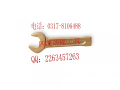 防爆敲击呆扳手是一类重要的手动扳手,一般是指手持端为敲击端,前端为工作端.材质主要分为铸铁,钢制及铝青铜合金,铍青铜合金.适用于工作空间狭小,不能使用普通扳手的场合.用来拧出六角头螺栓或螺母.角较小,用于只有较小摆角的地方(只需转过板手1/2的转角),由于接解面大,可用于强力拧紧.主要包括敲击梅花扳手和敲击呆扳手两种形式. 敲击呆扳手: