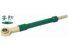 防爆工具快速加力扳手是用于易燃易爆气体场所的工具,快速加力扳手一端是套筒式圆环状的,圆环内一般有6个棱角,能将螺母或螺栓的六角部分全部围住,工作时不易滑脱,安全可靠。设有加力杆使用更为省力。产品规格:24-65mm,材质为铝青铜、铍青铜合金。广泛适用于石油、化工、等各种潜在火患和爆炸危险的环境中,也是机械制造好机械维修必不可少的专用工具。这两种材质的产品都能起到防爆的功能,而且其中的铍青铜合金材质的产品还能起到防磁的功能。目前在国内生产、销售、流通的防爆工具以材质区分可分为两大类: 1.铝铜合金(俗称铝青铜)防爆工具,具体材质是以高纯度电解铜为基体加入适量铝、镍、锰、铁等金属,组成铜基合金。 2.铍铜合金(俗称铍青铜)防爆工具,具体材质是以高纯度电解铜为基体加入适量铍、镍等金属,组成铜基合金。这两种材质的导热、导电性能都非常好.更多详情请查询 http://www.deantools.com