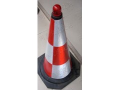 其中塑料型路锥采取分体式结构、底座采用橡胶或橡塑材料、使塑料路锥更稳重、不易被刮倒、使用灵活方便。