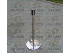 不锈钢伸缩护栏筒由不锈钢制成,底座由铸铁制成。两条丝带上印有“止步,高压危险”标志;丝带可以自由拉出,并可以自动收回,它的地盘直径为320mm ,、350mm。筒体高度:0.9m 筒体直径:76mm 丝带宽度:50mm 。