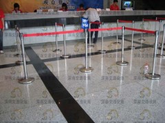不锈钢隔离护栏产品外形美观,坚固耐用,绝无拉带式一米线的卷边,容易脏旧,伸缩不灵等情况出现中间拉带颜色:红 蓝(其它颜色可订做,上面可做字简单复杂价格不与请咨询店主!)邻近窗口间只需一组隔离栏,保证隔离栏在银行窗口前摆放简洁,美观,大方。