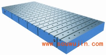 用于铆焊工艺的基础平板,工作面上有孔和T型槽,孔主要用来清理铆焊时的一些铁渣和焊接废弃物,T型槽主要是用来固定焊接件。