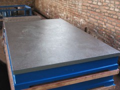 基础平板材质:高强度铸铁HT200-300 工作面硬度为HB170-240,经过两次人工处理(人工退火600度-700度和自然时效2-3年)使用该产品的精度稳定,耐磨性能好.