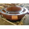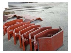 磨盘衬板毛坯放余量分块铸造加工底平面见新供探伤。  单件加工两侧30度或36度面1.划线加工保证角度及对称以防拼后圆错位控制大小端弦长来保证内外圆拼后都有加工余量。2.每分割缝侧面点焊5mm厚垫块保证拼后缝隙。